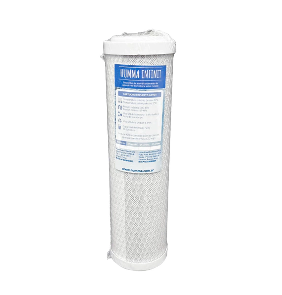 - Filtro de carbon activado en bloque que elimina cloro, olor y sabor del agua